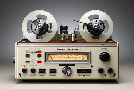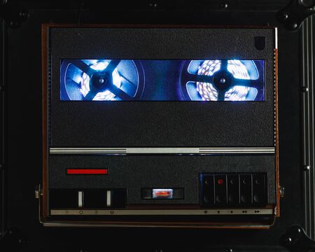 Vintage reel to reel tape recorder, old analogue audio recorder. Nostalgic audio gear