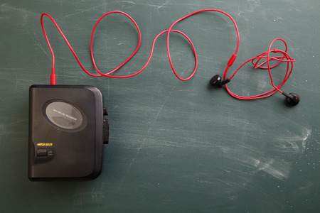 Retro old design boombox radio cassette tape recorders and audio old music player ussr. Vintage style photo background. Vertical.