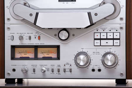 Close up of Analog Stereo Open Reel Tape Deck Recorder controls