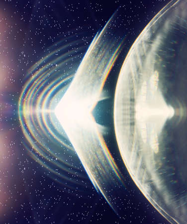 abstract galaxy background with planet and lines, 3d render illustration