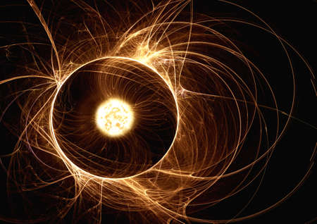 Intense electrical discharge and shine on a dark background
