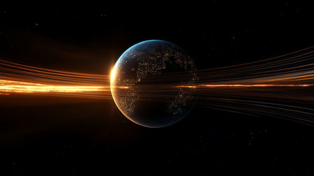 Futuristic vision of earth highlighting global connectivity through glowing data flow lines
