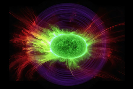 Celestial energies collide as the sun's magnetic storm sends charged particles toward Earth, creating an astonishing display in the atmosphere at dawn.