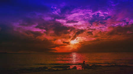 Stunning sunset abstract background with colorful sky at Haleiwa beach in north shore Oahu island Hawaii for traveling destination