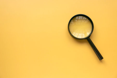 hand holding magnifier over yellow background