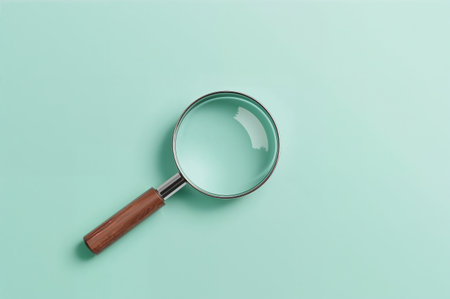Magnifying glass on pastel mint background closeup
