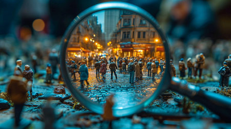 Magnifying glass and small people.