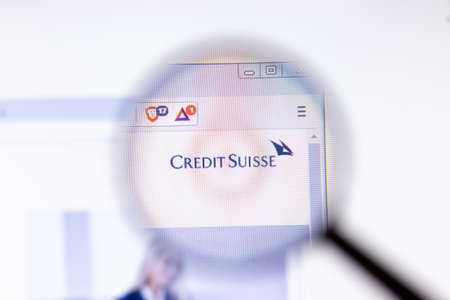Los Angeles, California, USA - 20 March 2020: Credit Suisse Group company logo on website page close-up on screen, Illustrative Editorial.