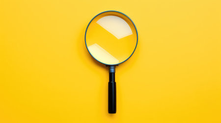 A black and silver magnifying glass on the minimalist yellow background.