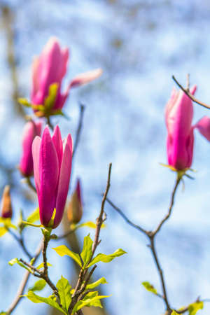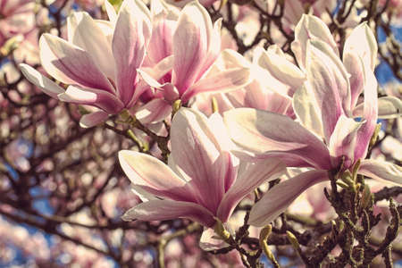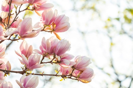 Magnolia tree blossom in spring time. Beautiful magnolia flowers