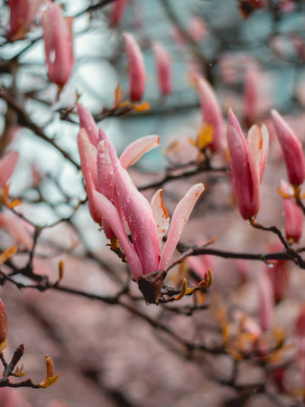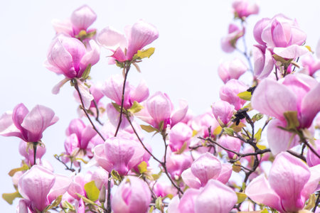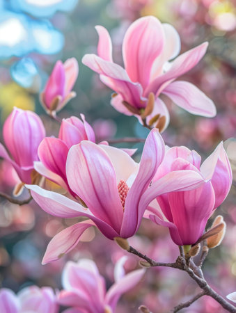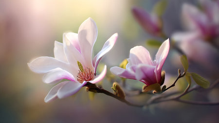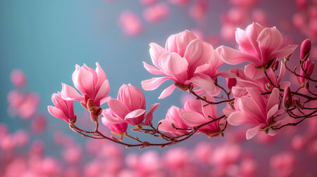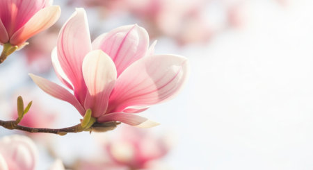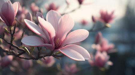Elegant Pink Magnolia Blossoms in Soft Light of Springtime