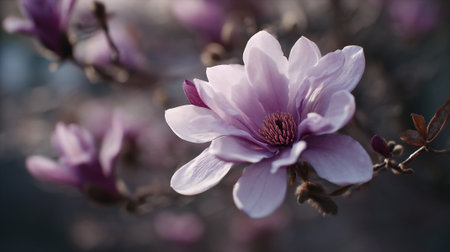 Gentle Magnolia Blossom Bathed in Soft Light on a Branch