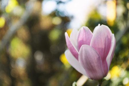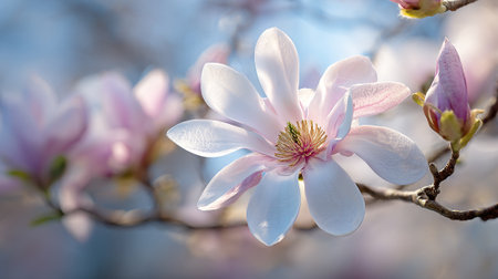 Radiant Magnolia Blossom Illuminated by Gentle Sunlight in Spring