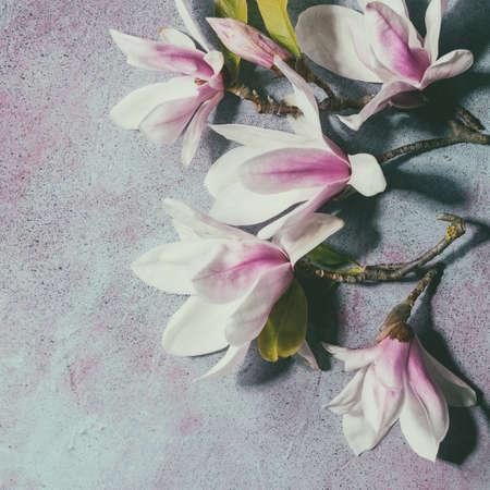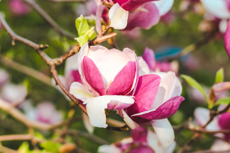 Fresh beautiful magnolia blossoms, springtime. Pink and white colors.