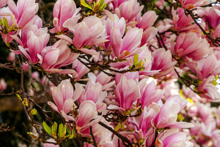 Magnolia soulangeana also called saucer magnolia flowering springtime tree with beautiful pink white flowers March.