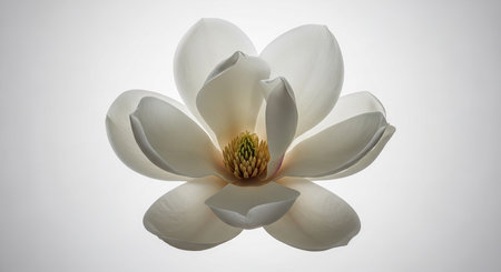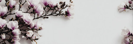 Delicate magnolia blossoms are arranged on a clean, light surface, celebrating the beauty of spring with their soft colors and graceful forms.