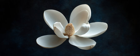 White magnolia flower on dark background, elegant simplicity. Nature and botanical concept