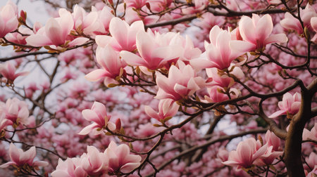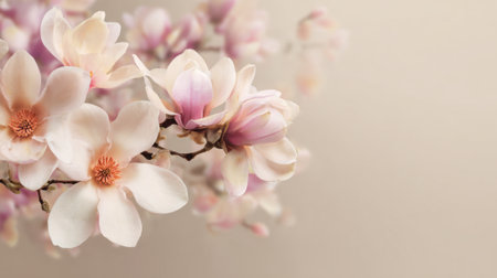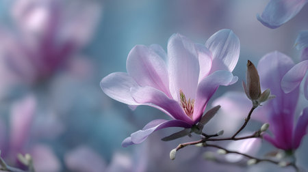 Magnolia flowers bloom gently their soft hues creating a calm and tranquil atmosphere.