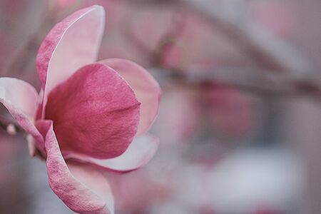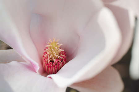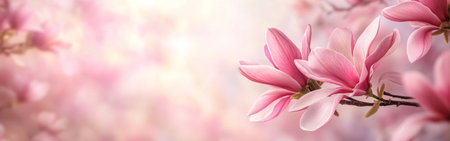 Beautiful floral concept. Pink magnolias in a spring edition. Photo with shallow depth of field.