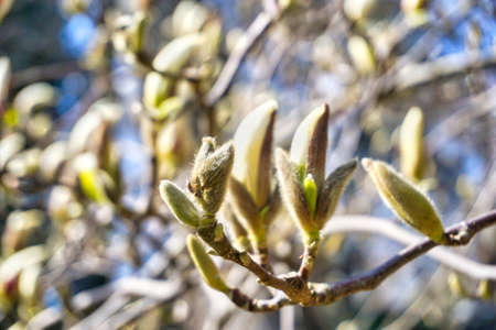 Detail of some flower buds on a Magnolia tree
