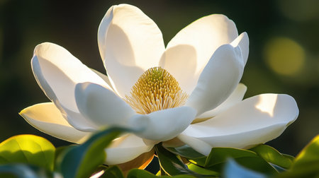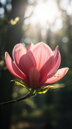 Radiant Magnolia Blossom Illuminated by Gentle Sunlight in Spring