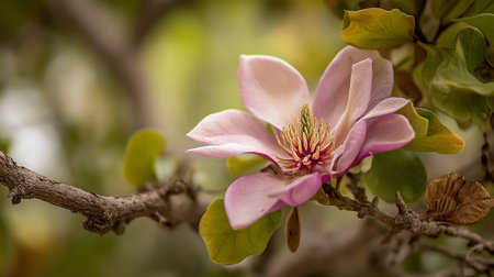 Delicate Pink Magnolia Blossom Flourishing on a Branch in Spring