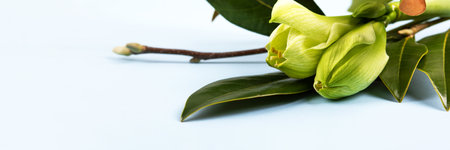 Adorable large magnolia flowers bloom in the open air for spring decoration