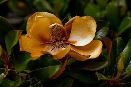 Magnolia grandiflora flower on the tree in the garden