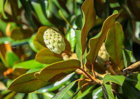 Magnolia grandiflora, magnolia tree with white flower