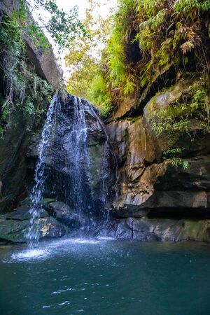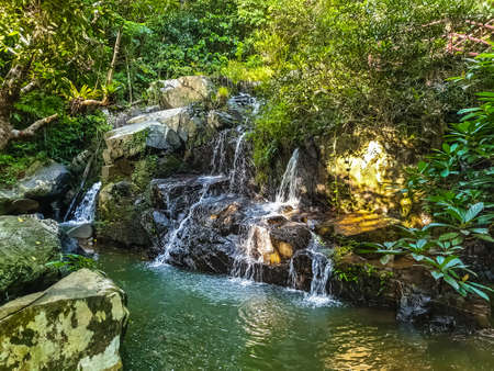 Waterfall and mountaina river in the Yanoda Rainforest Cultural Tourism Zone, Hainan, China