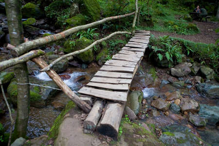 Wooden bridge over the Rio Mau in Cabreia's Park, Sever do Vouga, Aveiro, Portugal.