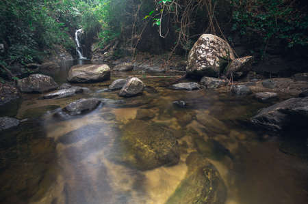 Nature landscape background of river in the forest. Golden stream, Vietnam