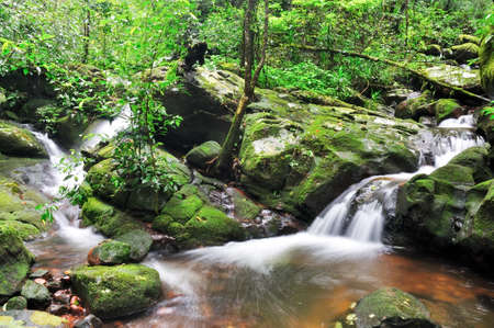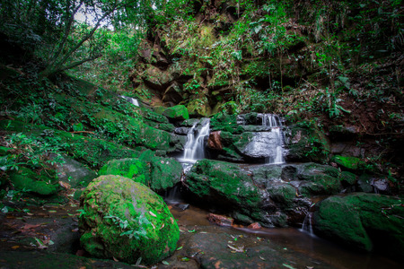 beautiful waterfall in green forest in jungle at Phu Soi Dao mountain, Phitsanulok, Thailand.