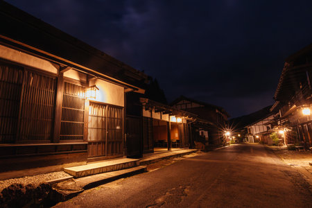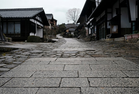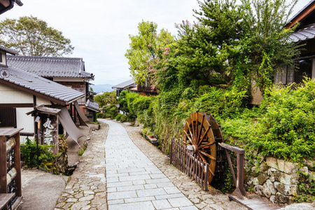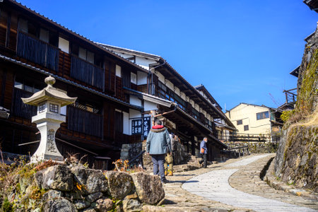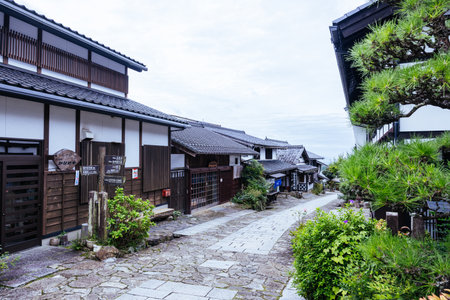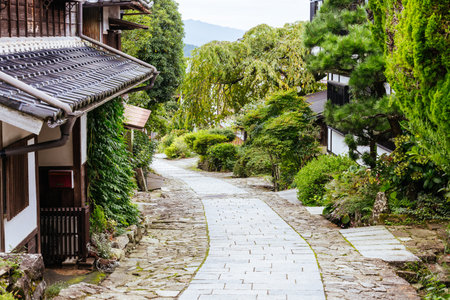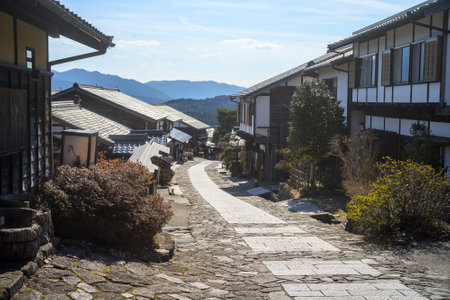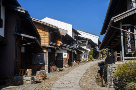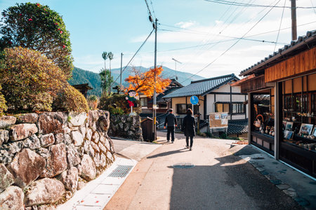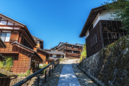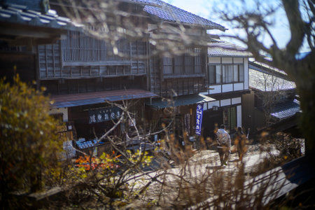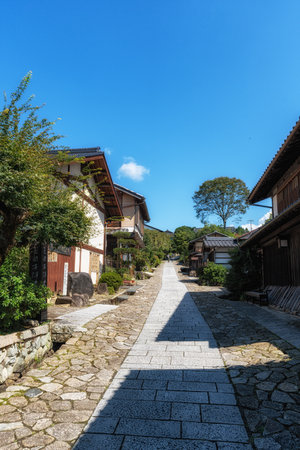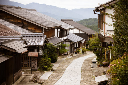 Tsumago, Japan; 1st October 2023: Streets and traditional Japanese houses at Tsumago Juku town along the Nakasendo trail in Kiso Valley, Japan.