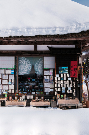 JAN 24, 2014 Fukushima, Japan : Vintage shop, vintage house in Ouchi Juku village, Fukushima, Tohoku, Japan in Winter snow