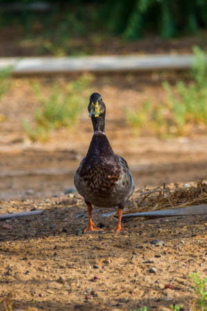 Mulard ducks walk in the poultry yard. Concept: home farm, agriculture, village, poultry yard, breeding for meat.