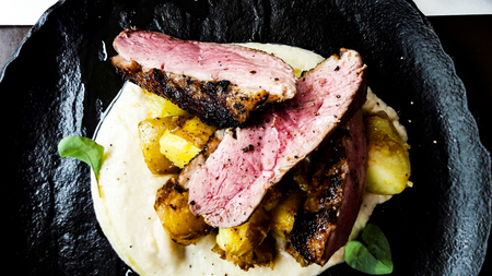 A portion of perfectly cooked duck