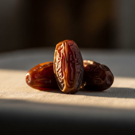 A powerful hero detail shot capturing the deep texture of a cluster of Medjool dates. The extreme cl