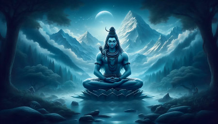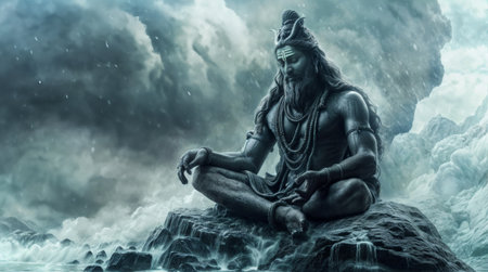 Lord Shiva in deep meditation surrounded by natures calming beauty. Concept Nature Photography, Meditation, Lord Shiva, Tranquility, Peaceful Surroundings