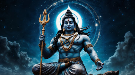 Maha Shivratri, Lord Shiva on blue background. AI Generative.