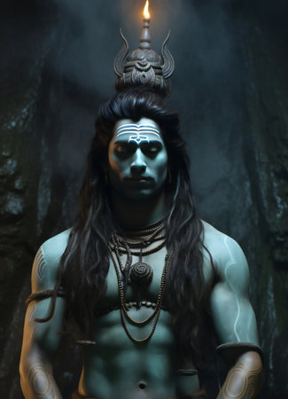 Artistic Representation of Hindu Deity Shiva in Conceptual Imagery. Concept Conceptual Art, Hindu Deity Shiva, Artistic Representation, Symbolism, Spiritual Imagery