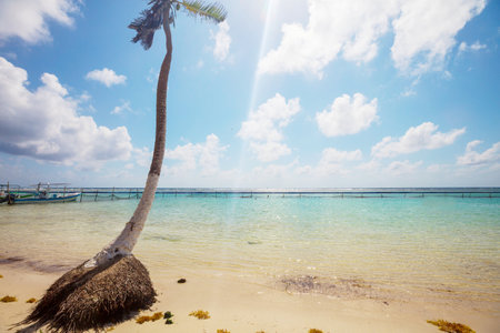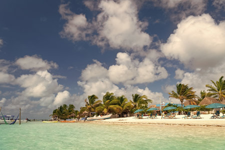 nice sunny beach day in Mahual in Mexico caribbean Ocean yucatan