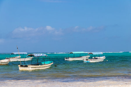 View of pleasure boats on a beach in the Dominican Republic