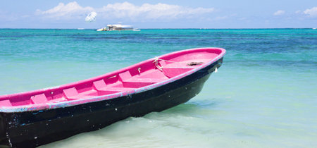 Concrete dock wigh boat on Bavaro Beach in Punta Cana, Dominican Republic