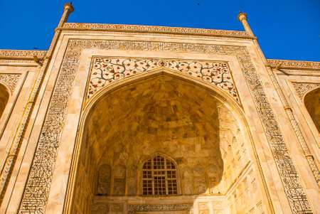 Taj Mahal on the background of blue sky. Agra, India