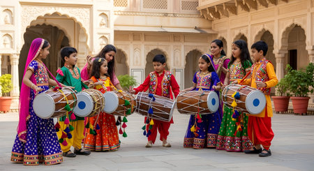 Group of indian dancers performing traditional dance in Jaipur, India