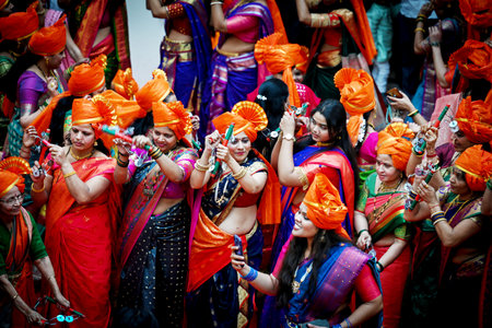 NAVI MUMBAI, INDIA - MARCH 30: People enjoying the festival of Gudi Padwa at Vashi on March 30, 2025 in Navi Mumbai, India. Gudi Padwa is a significant festival celebrated by Hindus in Maharashtra, and Yugadi in Karnataka is observed on the first day of t