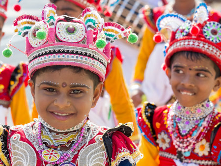 MIRISSA, SRI LANKA - NOVEMBER 6, 2014: Unidentified children involved in the Katina festival which held according to the buddhist culture in full-moon day
