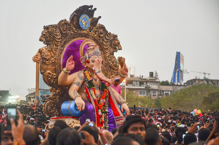 Mumbai, India - September17, 2013 - Devotees bringing Hindu God Ganesha into the ocean during Ganesha Festival