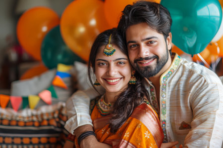 Indian couple celebrating Raksha Bandhan, Rakhi or Rakhi